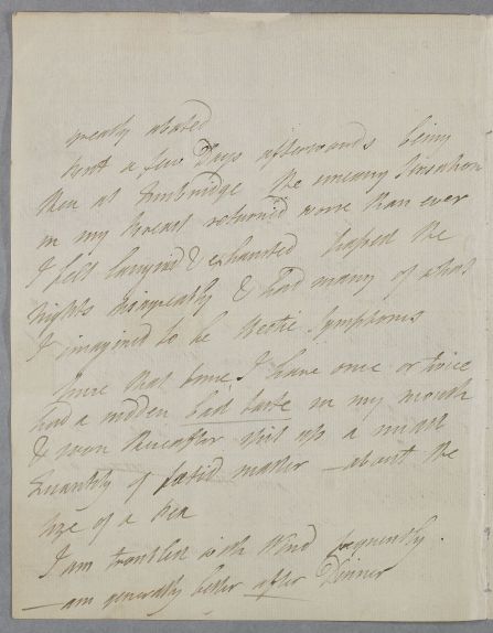 | Summary | Unsigned case note, by a patient, probably male, who feels hectic and has a weak chest; has bathed at Brigthelmstone and visited Cambridge. Date only based on placing in box. |