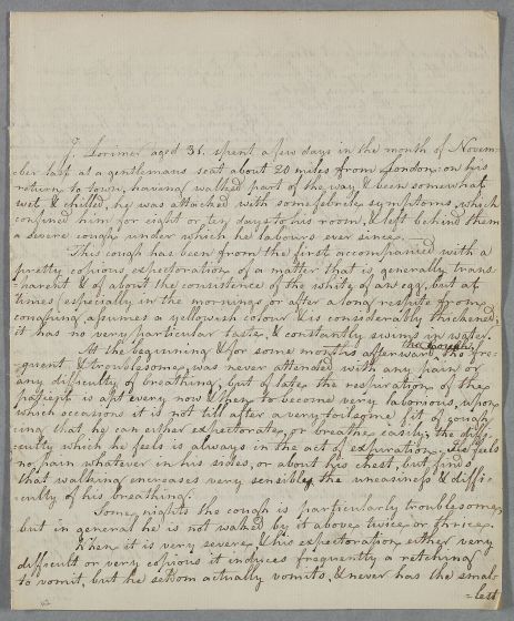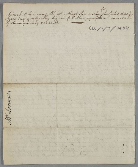 | Summary | Unsigned case note describing the case of J. Lorimer, who was previously attended by William Fordyce in London. |