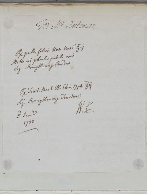 [ID:245] From: Dr William Cullen (Professor Cullen) / To: Mr Gordon / Regarding: Mr Alexander Anderson (of Aberdeen) (Patient) / 3 January 1782 / (Outgoing)