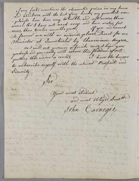 | Summary | Letter from John Carnegie, concerning his own case. |
