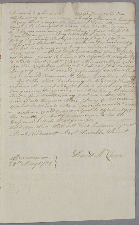[ID:2464] From: Mr David Maclean (Mclean, McClean) / To: Dr William Cullen (Professor Cullen) / Regarding: Mr David Maclean (Mclean, McClean) (Patient) / 28 May 1784 / (Incoming)