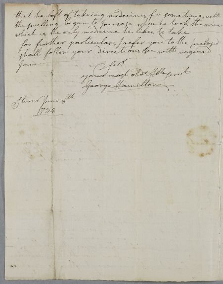 [ID:2469] From: Dr George Hamilton / To: Dr William Cullen (Professor Cullen) / Regarding: Mr Robert Cathcart (of Genoch & Knockdolian) (Patient) / 8 June 1784 / (Incoming)