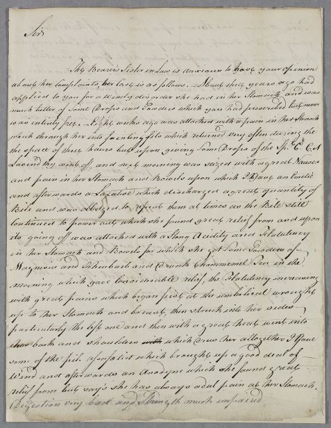 Case of a female patient [possibly Johnston], with a bilious complaint. She consulted Cullen 'about there years earlier', but no relevant evidence found. |