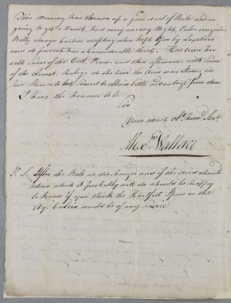 | Summary | Letter from Alexander Wallace, concerning the case of a female patient [possibly called Johnstone], the sister-in-law of the person delivering the letter. He mentions that she 'applied to you for a windy disorder' about three years previously (no relevant evidence traced). She has a bilious complaint and history of poor digestion. Wallace asks if Hartfell Spa Water would be advisable. |