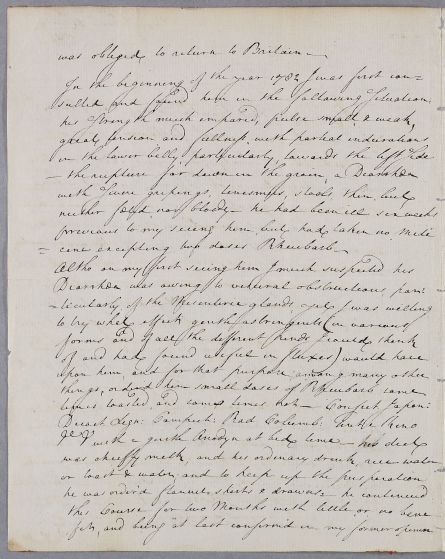 Case of Captain Urquhart who has frequently suffered from a flux (diarrhoea), since returning form the East Indies. |