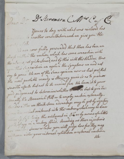 | Summary | Reply to Dr Stevenson signed by both Cullen and Nathaniel Spens, regarding 'Mrs C of G', an anonymised female patient. |