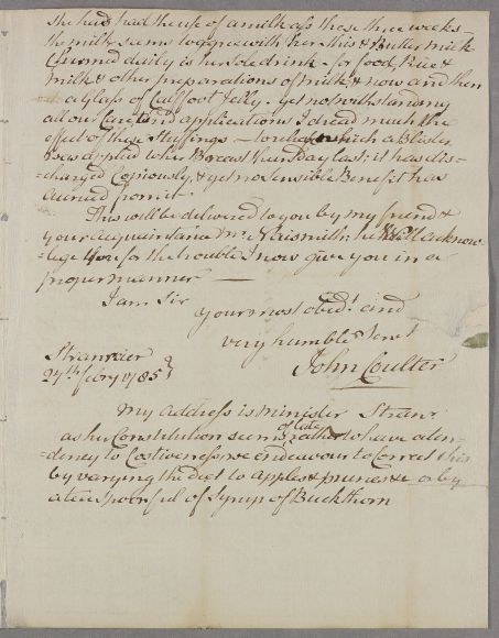 | Summary | Letter from Reverend John Coulter, concerning the case of his wife. |