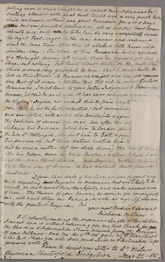 | Summary | Letter from Richard Milnes concerning the case of an unnamed male patient. |