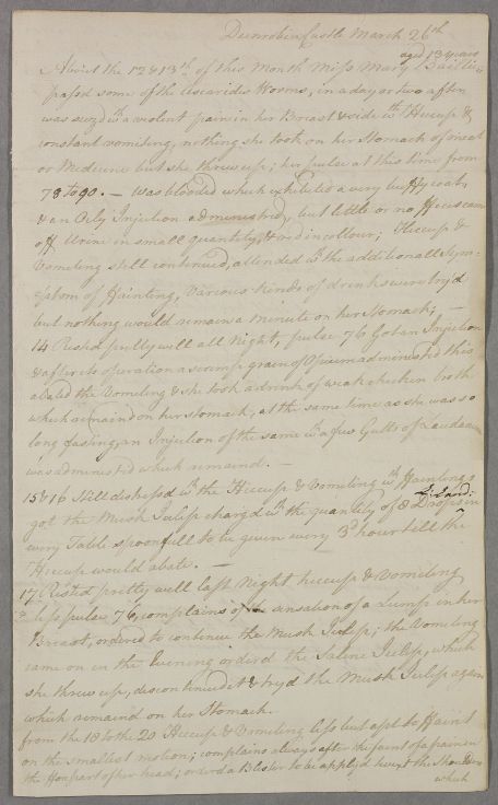 [ID:2591] Case Note / Regarding: Miss Mary Baillie (Patient) / 26 March 1785 / (Incoming)