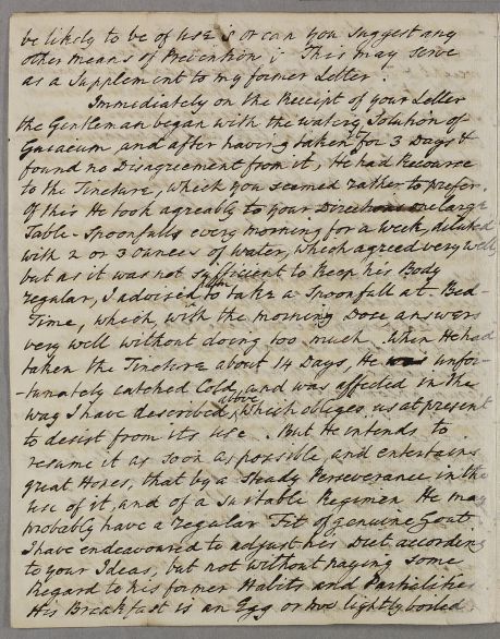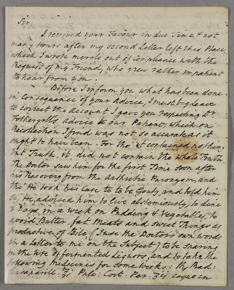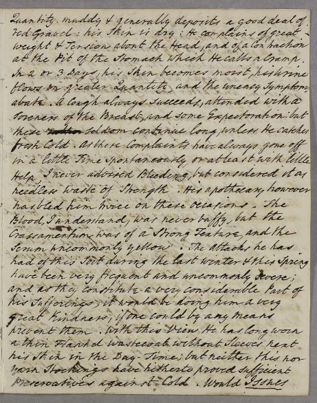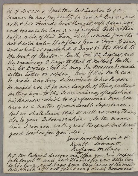 | Summary | Letter from Richard Milnes, concerning the case of an unnamed male patient. He also writes of Dr Fothergill's advice. |