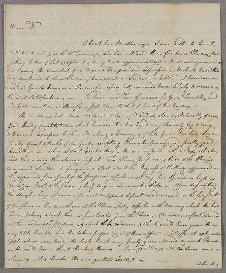 | Summary | Letter from James Monteath, concerning the case of an unnamed male patient Monteath saw with Dunlop. |