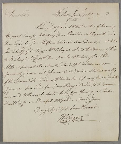 | Summary | Letter from W. Cokayne, concerning the case of Mrs Cokayne, 'who is the Bearer of this'. |