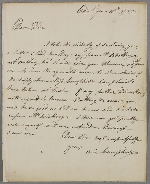 [ID:2633] From: Dr Ivie Campbell / To: Dr William Cullen (Professor Cullen) / Regarding: Miss Campbell (of Dunstaffnage) (Patient) / 11 June 1785 / (Incoming)