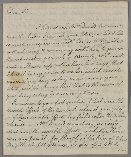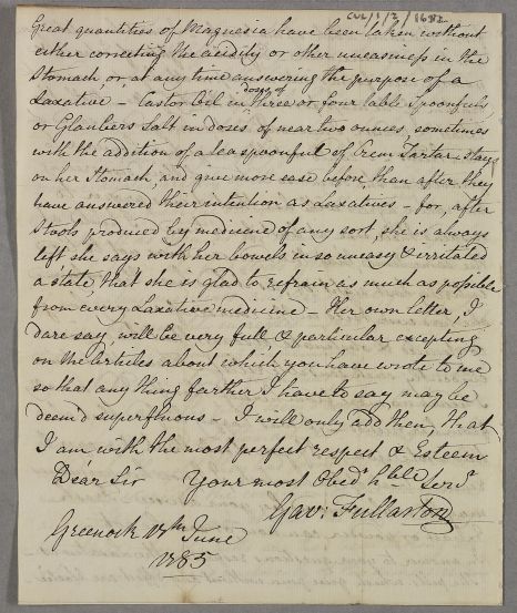 | Summary | Letter from Gavin Fullarton, concerning the case of Mrs Donald. He apologises for taking so long to answer Cullen's letter, and explains that '[i]t was only within these two days, that I had it in my power to see her'. |