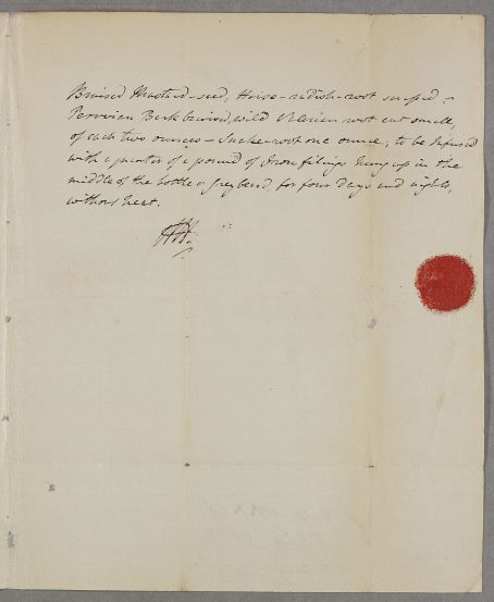 | Summary | Letter from Dr Haliday to Mrs Forsaythe, giving directions for infusing iron filings in wine and the rest of a suggested regimen. |