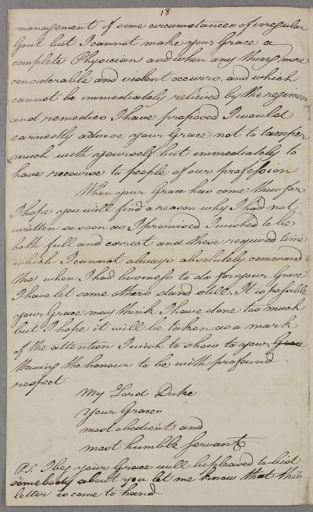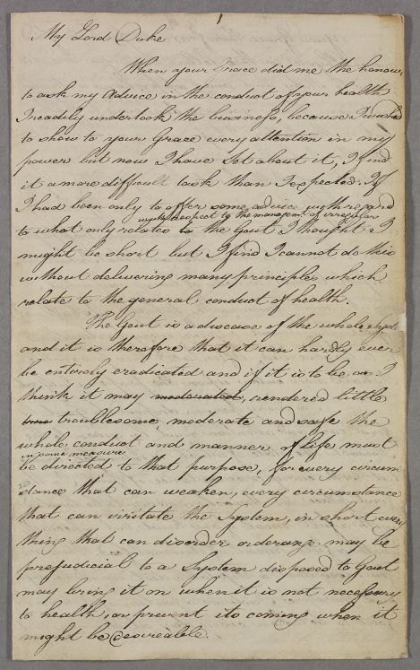 [ID:2676] From: Dr William Cullen (Professor Cullen) / To: Sir Alexander Gordon (Lord, 4th Duke of Gordon) / Regarding: Sir Alexander Gordon (Lord, 4th Duke of Gordon) (Patient) / July? 1785 / (Outgoing)