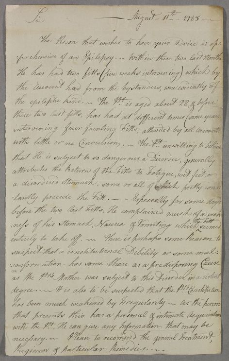 Letter from Mr Nicol regarding an unnamed patient who is 'apprehensive of an Epilepsy'.