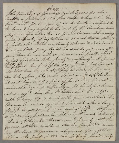 Case of John Gordon of Greishop who is being treated with electricity for an inability to swallow. |