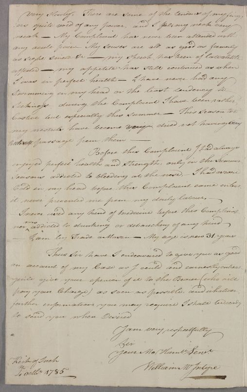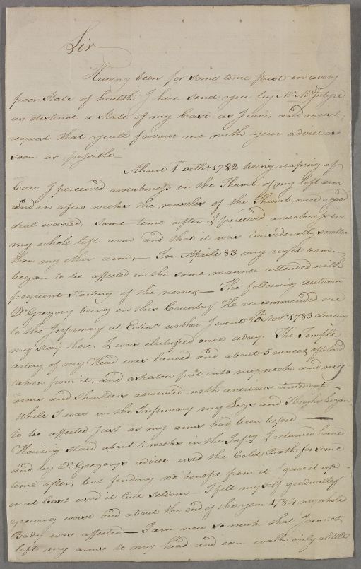 Letter from William McIntyre, concerning his own case with symptoms dating back to 1782.