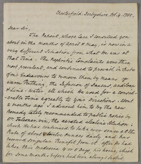 Chesterfield, Derbyshire, Oct. 4. 1785.