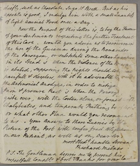 | Summary | Letter from Richard Milnes, concerning the case of an unnamed male patient 'whose case I consulted you about in the months of April & May' identifiable as Mr Darrel. |