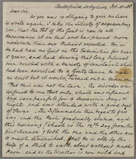 | Summary | Letter from Richard Milnes concerning the case of an unnamed male patient with gout. |