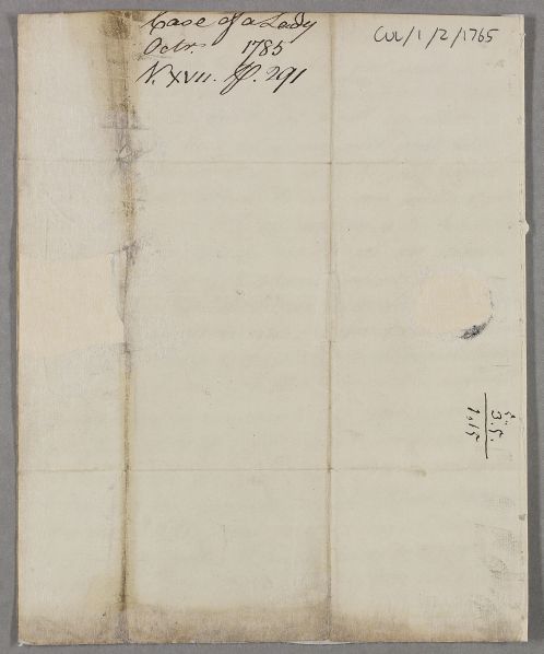[ID:2725] From: Mr / To: Dr William Cullen (Professor Cullen) / Regarding: Lady (Patient) / October 1785 / (Incoming)