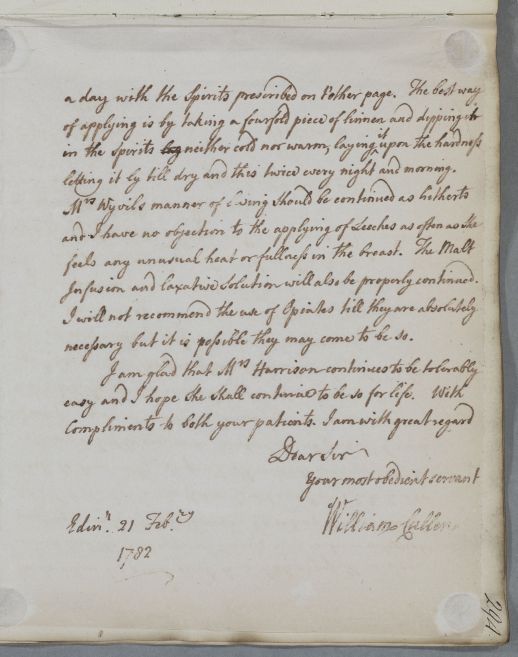 [ID:273] From: Dr William Cullen (Professor Cullen) / To: Dr Richard Story / Regarding: Mrs Harrison (Patient), Mrs Wyvil (Wyvill) (Patient) / 21 February 1782 / (Outgoing)