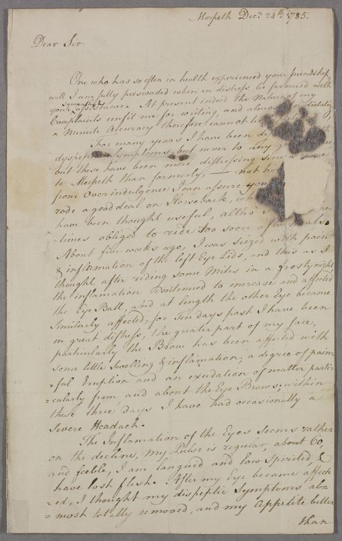 [ID:2743] From: Dr Charles Keith / To: Dr William Cullen (Professor Cullen) / Regarding: Dr Charles Keith (Patient), Mr John Cook (Cooke; of Gallowhill; of Ogle. ) (Patient), Mr (Patient) / 24 December 1785 / (Incoming)