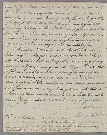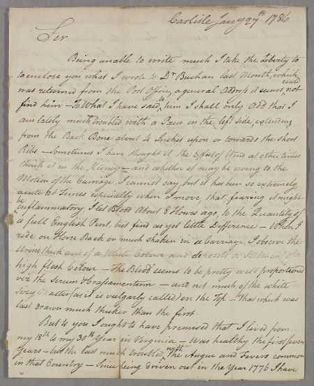 [ID:2756] From: Mr James R. Miller (Millar) / To: Dr William Cullen (Professor Cullen) / Regarding: Mr James R. Miller (Millar) (Patient) / 27 January 1786 / (Incoming)