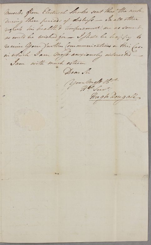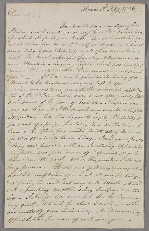 [ID:2761] From: Dr Hugh Dougall (Dougal) / To: Dr William Cullen (Professor Cullen) / Regarding: Mr John Gordon (of Greshop/Grieshop) (Patient) / 3 February 1786 / (Incoming)