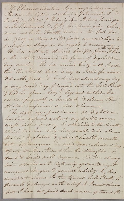 Case of John Gordon of Greishop who is being treated with electricity for an inability to swallow. |