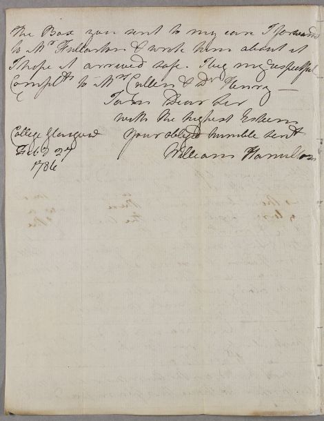 [ID:2768] From: Dr William Hamilton (in Glasgow) / To: Dr William Cullen (Professor Cullen) / Regarding: Mr John Hamilton (Jackie; Hamilton-Dundas) (Patient) / 27 February 1786 / (Incoming)