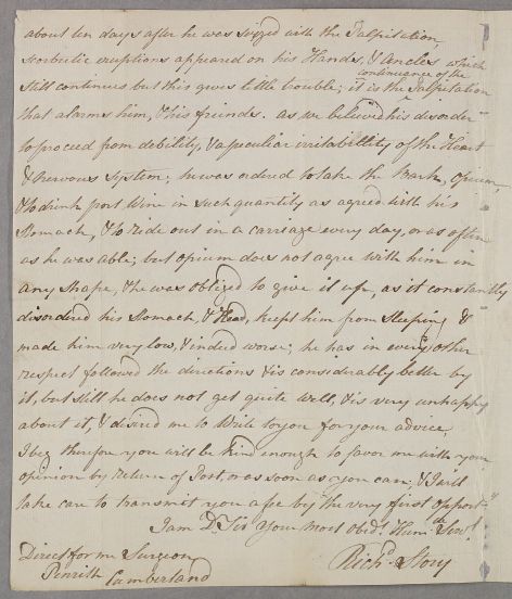 [ID:2780] From: Dr Richard Story / To: Dr William Cullen (Professor Cullen) / Regarding: Mr Vane (Patient) / 25 March 1786 / (Incoming)
