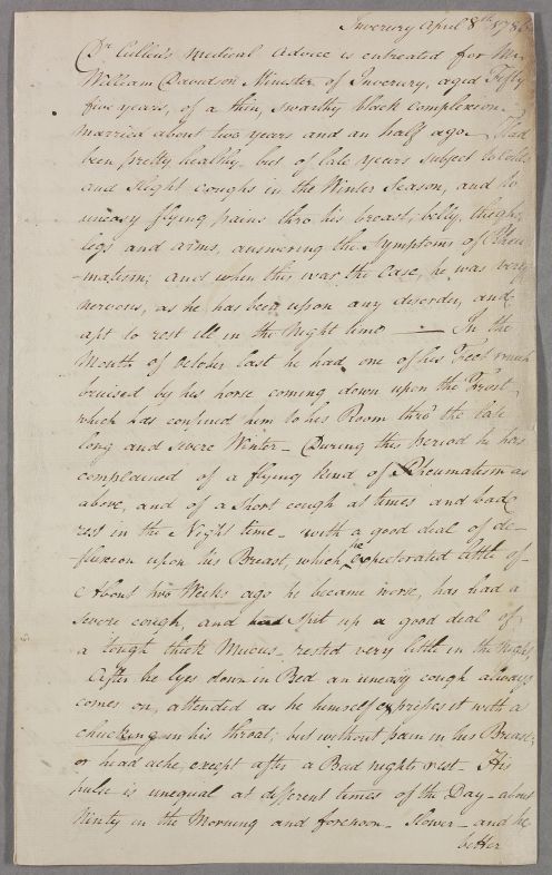 [ID:2795] Case Note / Regarding: Reverend William Davidson (of Inverurie) (Patient) / 8 April 1786 / (Incoming)