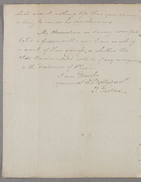 | Summary | Letter from T. Trotter concerning the case of an unnamed female patient who 'has been for some time past alarmed at an unusual appearance of a luminous body darting itself from different parts of her cloaths'. He also mentions just having published a work on scurvy. |