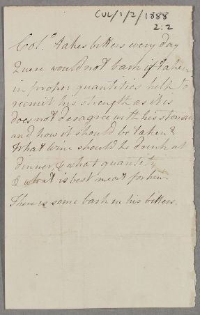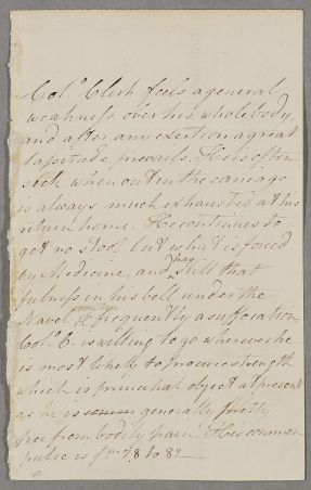 Case of Colonel George Clerk [Clark, Clarke, Clerke] who becomes excessively weak and feeble from chronic costiveness, breathlessness, and other chronic complaints. In New York he has a perpetual fever and stomach complaint and mentions consulting Cullen before but no firm evidence traced unless he is the same patient as Case 283 in 1768. |
