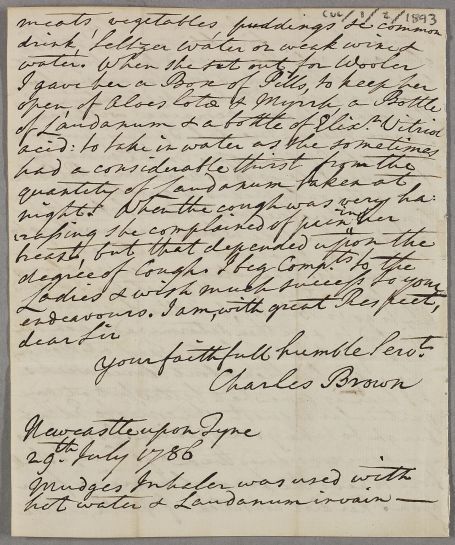 [ID:2858] From: Dr Charles Brown / To: Dr William Cullen (Professor Cullen) / Regarding: Miss Ann Wilson (Patient) / 29 July 1786 / (Incoming)