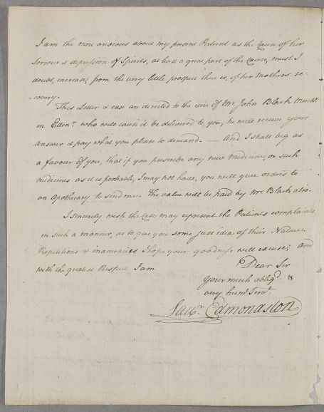 [ID:2873] From: Mr Laurence Edmonston (Edmonstone) / To: Dr William Cullen (Professor Cullen) / Regarding: Miss Johannah Sanderson (Patient), Mr Charles Sanderson (Patient) / 8 September 1786 / (Incoming)