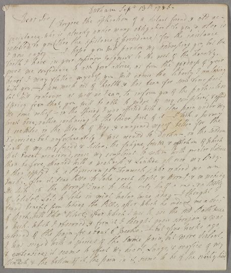 [ID:2879] From: Mrs Jane Porter (Blenkinsop) / To: Dr William Cullen (Professor Cullen) / Regarding: Mrs Jane Porter (Blenkinsop) (Patient) / 13 September 1786 / (Incoming)