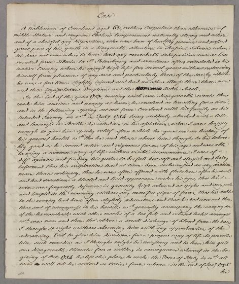 Case note describing the case of an unnamed nobleman of Courland, Latvia. By William Baylies.