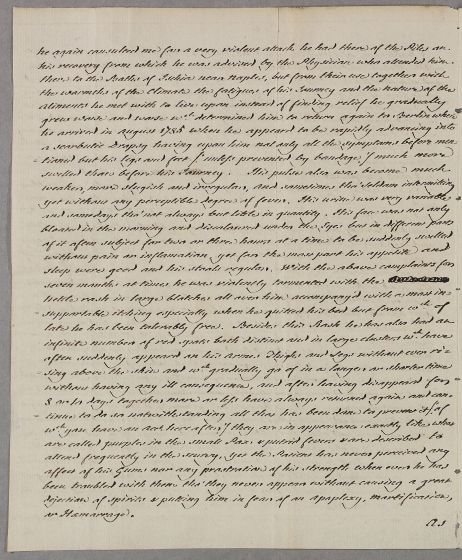 Case of the Duke of Courland (a Latvian noble) who is advised over a nettle-rash and how to regulate his diet etc. he is under the care of Dr Baylies at Berlin. |