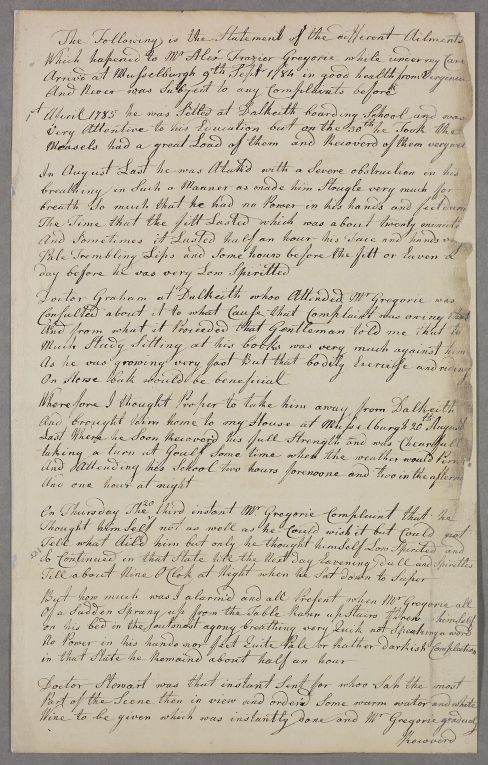 [ID:2893] Case Note / Regarding: Mr Alexander Fraser Gregory (Fraser, Frazier Gregorie) (Patient) / September 1786 / (Incoming)