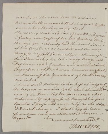 | Summary | Letter from Thomas Logan, concerning the case of Miss Binning. |