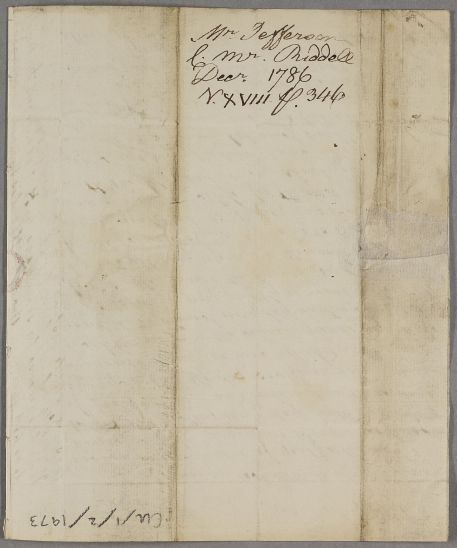 | Summary | Letter from Thomas Jefferson, concerning the case of Mr Riddell. He mentioned that Dr Hall and Dr Brown have also been consulted. |