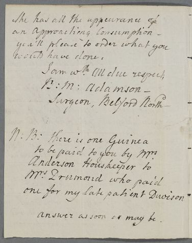 Letter from B. M. Adamson, concerning the case of Elizabeth Snowden.