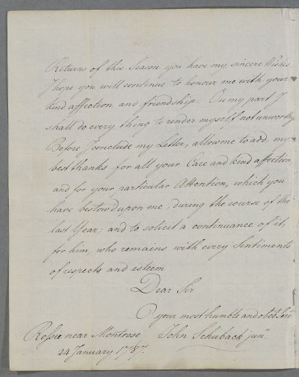 [ID:2974] From: Mr John Schubach / To: Dr William Cullen (Professor Cullen) / Regarding: Mr John Schubach (Patient) / 24 January 1787 / (Incoming)