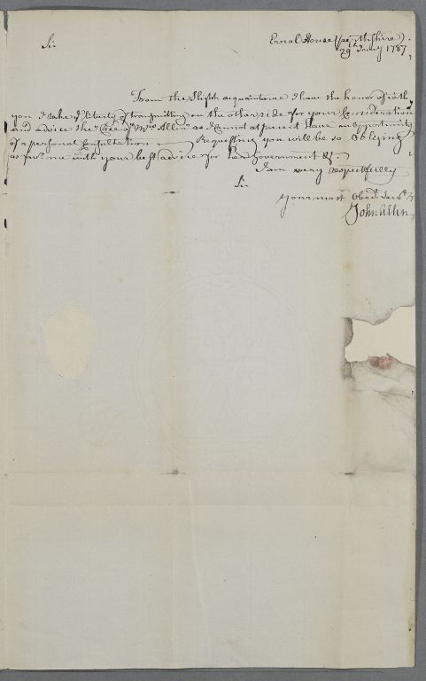 | Summary | Letter from John Allen concerning the case of Mrs Allen, 'a native of Jamaica'. |