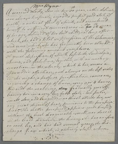 Case of Mrs Wynn (Wynne), a fifty year old mother with a long-standing menstrual disorder and 'low spirits' diagnosed as 'nervous' weakness. |