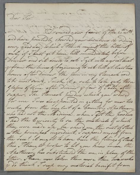 | Summary | Letter from William Stewart, concerning his own case. He has 'pointedly observed your directions in riding every good day, which I think myself the better of'. He is concerned that the Apothecary may have substituted rust of Steel for filings of Steel in his prescription. |